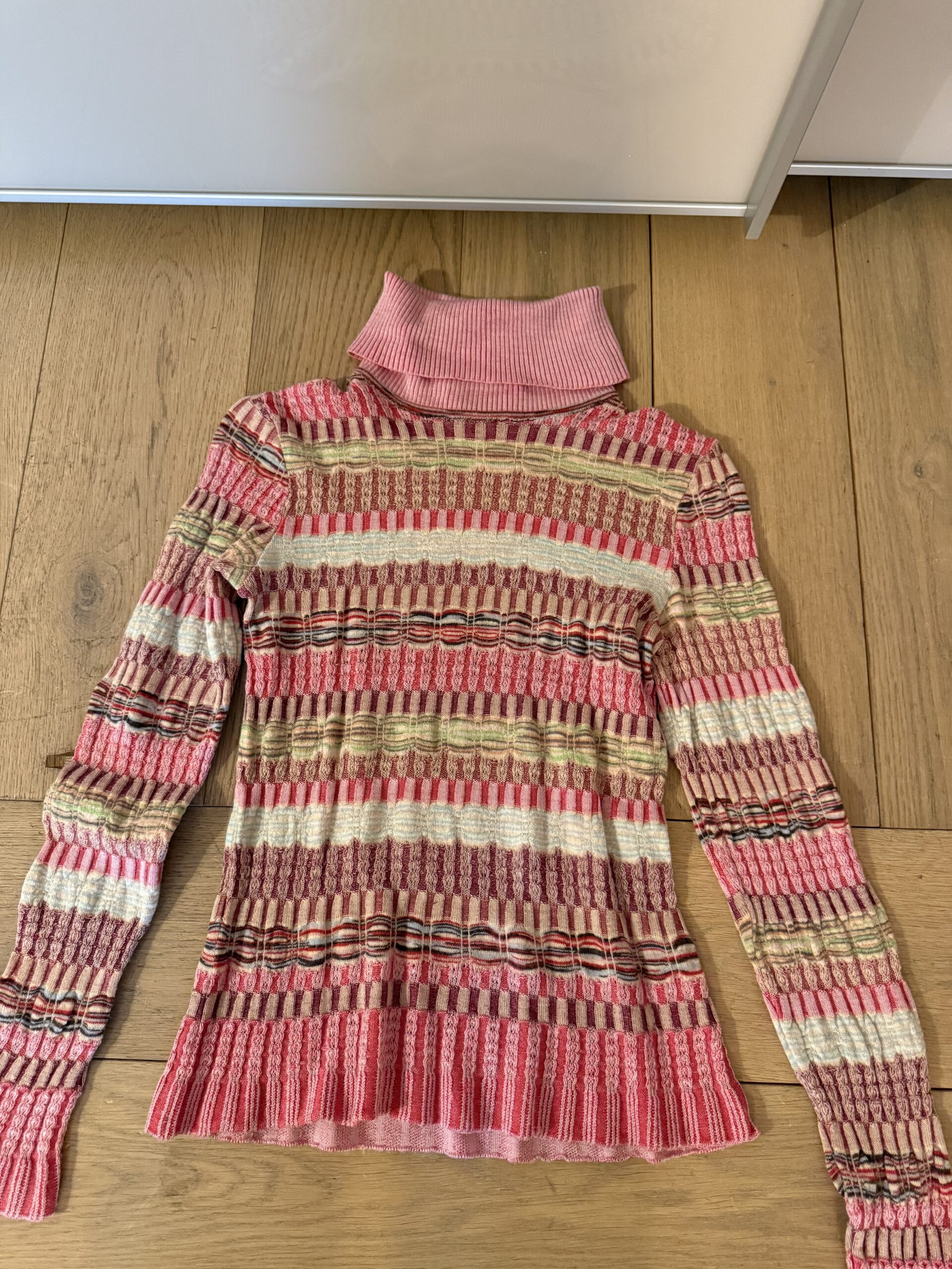 Missoni è famosa per i suoi motivi geometrici, con una vasta gamma di colori la maglia a collo alto di Missoni è un capo versatile che può essere abbinato a diversi stili dal casual all’ elegante, può essere indossata